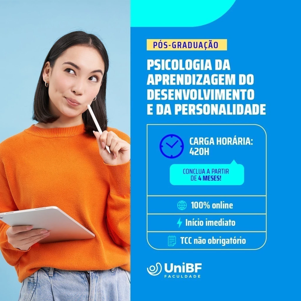 O curso de Pós-Graduação EAD em Psicologia da Aprendizagem do Desenvolvimento e da Personalidade da UniBF visa desenvolver atividades de pesquisa, apresentando autonomia intelectual e espírito investigativo; Exercitar normas científicas na elaboração de trabalhos acadêmicos tais como: projeto de pesquisa, artigo acadêmico, monografia, entre outros; Favorecer a formação crítica e criativa do aluno pós-graduando, destacando seu papel profissional como Psicólogo; Planejar e executar as atividades emergentes da Psicologia.